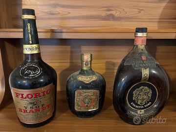 4 bottiglie da collezione: Vecchia Romagna Etichetta nera 2 lt Vecchia Romagna Brandy qualita rara Brandy Florio V.S.O.P. China Martini 2 lt