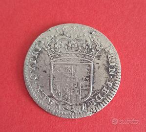 Lira in argento, coniata sotto il ducato di Vittorio Amedeo II (1675-1730). Si tratta di un'emissione particolarmente ricercata dai collezionisti della monetazione sabauda per la rarità dell'anno di coniazione (1690), meno comune rispetto alle annate successive. DETTAGLI TECNICI: • Autorità emittente: Vittorio Amedeo II, Duca di Savoia. • Anno di coniazione: 1690. • Zecca: Torino. • Metallo: Argento (Ag 917/1000). • Valore nominale: 1 Lira (indicata come 20 Soldi). • Diametro: ~28 mm / Peso teorico: 6,12 g. DESCRIZIONE ICONOGRAFICA: • Dritto: busto giovanile del Duca rivolto a destra, con lunga parrucca a riccioli e armatura decorata. Legenda: VICTOR • AM • II • D • G • DVX • SAB (Vittorio Amedeo II per grazia di Dio Duca di Savoia). • Rovescio: scudo sabaudo completo e coronato, sormontato dalla data 1690. In basso, entro una cartella ornata, l'indicazione del valore S 20 (20 Soldi). Legenda: PRINC • PEDEM • REX • CYPRI • (Principe di Piemonte, Re di Cipro). STATO DI CONSERVAZIONE: Il dritto si presenta in ottime condizioni con rilievi nitidi. Il rovescio mostra una maggiore usura da circolazione, pur mantenendo legende e data perfettamente leggibili. Si segnala una piccola scalfittura sul bordo esterno del rovescio, che non compromette l'estetica generale del pezzo. PERCHE RARA ? In quell'anno la produzione fu limitata a causa dell'inizio della Guerra della Grande Alleanza contro la Francia di Luigi XIV; le risorse erano scarse e la coniazione meno sistematica rispetto agli anni successivi. PREZZO DI VENDITA: € 320