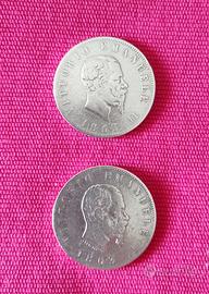 vendo n°2 monete da lire 2 Vittorio Emanuele ll Re d'Italia 1863,zecca di Napoli,BB+,10g argento 835 diametro 26,81,una delle due presenta la scritta Fert al contrario rispetto alla facciata del dritto