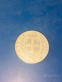 lire 5 argento 900/1000 del 1865 rara perfetta re Vittorio Emanuele III zecca di Napoli diametro 37 mm peso 25 grammi