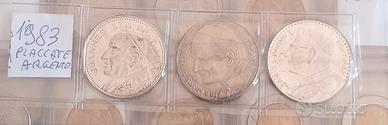 Le 5 monete lire dell'anno Santo 1975 euro. 30,00 Le tre medaglie dei Papi sono placcate argento tutte e tre. euro 40,00 Papa pio xll medaglia del 1954 euro 30,00. Non spedisco solo consegna a mano sono di Roma.