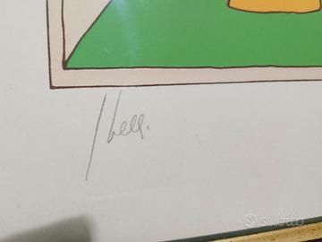Litografia firmata da Antonio Bueno e Giuliano Ghelli "La valigia dei sogni" esemplare 22/99 dimensioni 50x70 con timbro "calco grafica studio"