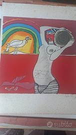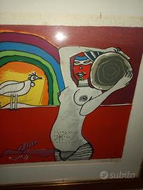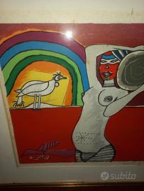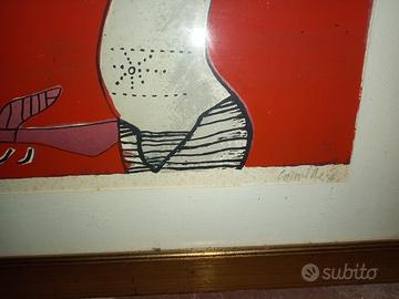 Litografia originale su carta, tecnica mista, con cornice del pittore Corneille. Presenta alcuni segni di umidità in basso dove c è la firma ma non ne risente l'opera.