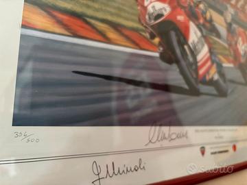 La Litografia è fatta dall'artista Rod Organ, è numerata e firmata da Minoli, Domenicali e dagli stessi Capirossi e Bayliss.