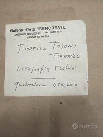 Vendo urgentemente per trasloco grande stampa fiorello tosoni pagata 400 mila lire, autore toscano. Acquistata in galleria d arte a marina di massa. Il valore è aumentato ma ho urgenza a venderlo! Misure 80x60