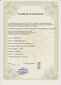 Litografia originale Picasso firma Autorizzata © FundaciÛ Museu Picasso, Barcellona. Licenza S.P.A.D.E.M. Parigi. Tipo di carta: Arches France tipo 189 veline infinity. (vedi toto). Esecuzione: 2008/2009. Certificato di autenticita' (vedi foto). Non Ë compresa di cornice. Opera eseguita sotto licenza in tiratura limitata di 250 copie. Numerazione esemplare: litografia 22/250 (vedi foto). Dimensione litografia : altezza 38,5 cm.- larghezza 28,5 cm. Figura: altezza 33 cm. - larghezza 26 cm.
