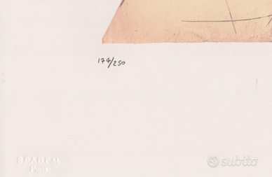 Litografia originale Picasso firma Autorizzata © FundaciÛ Museu Picasso, Barcellona. Licenza S.P.A.D.E.M. Parigi. Tipo di carta: Arches France tipo 189 veline infinity. (vedi toto). Esecuzione: 2008/2009. Certificato di autenticita' (vedi foto). Non Ë compresa di cornice. Opera eseguita sotto licenza in tiratura limitata di 250 copie. Numerazione esemplare: litografia 174/250 (vedi foto). Dimensione litografia : altezza 38,5 cm.- larghezza 28,5 cm. Figura: altezza 33 cm. - larghezza 26 cm.