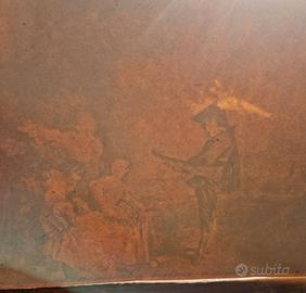 Propongo litografia ottocentesca raffigurante “La Leçon d’Amour”, celebre composizione di Jean-Antoine Watteau (1684-1721).