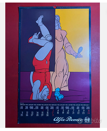 Litografia del noto e quotato pittore Valerio Adami, dimensioni foglio 50x70 e tiratura 63/360. Lievi segni del tempo sul bordo bianco, facilmente sanabili sovraponendo bordo di cartoncino bianco prima dell'apposizione del vetro. L'opera è ben storicizzata in quanto apparsa nel calendario Alfa Romeo del 1982, mese gennaio. Prezzo non trattabile. Da aggiungere spesa di spedizione, da concordare in base alla tipologia del pacco