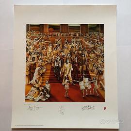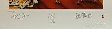 Splendida e rarissima Litografia originale dei Rolling Stones, "It's Only Rock N' Roll", anno 1997, n° 2446/5000. Condizioni perfette, mai appesa, distribuita dal canale ufficiale dei Rolling Stones, logo stampato in rilievo, le firme sono stampate. Dimensioni 57 x 67 cm.