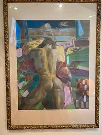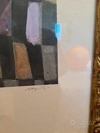 Esemplare unico su base litografica colorato a mano “di notte, l’annunciazione” , Ugo Attardi
