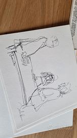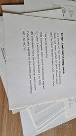 litografie stampe catalogo commemorativo della mostra bag one di John Lennon cofanetto della mostra del 1971 presso la galleria d'arte moderna di ponte sisto in Roma buono stato generale, come da foto, cofanetto completo di tutte le stampe e recensione del critici d'arte Battistini, anche la recensione stampata sul stesso materiale delle litografie per collezzionisti di arte musica Beatles Lennon modernariato dipinti quadri stampe