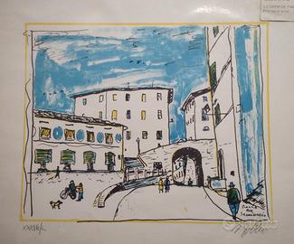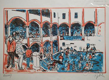 Lotto di n. 3 litografie di Alfredo Fabbri, pittore toscano, conservate in condizioni originali nella busta di plastica ancora con l'etichetta ed il prezzo in lire dell'epoca. Esemplari firmati e numerati XXXVIII/L (38/50). Soggetti rappresentati: dimensioni dei supporti: cm 50x35 - Chiesa s.s. Jacopo e Lucia - cm. 30x23 - Piazza del Seminario - cm. 30x24 - Sagra del Tartufo - cm. 34x22 Tutti e tre i soggetti rappresentati si riferiscono alla località di S. Miniato in provincia di Pisa. L'artista: Alfredo Fabbri (1926-2010) è stato un pittore italiano di Toscana nato a Grosseto (GR), noto per il suo stile che spazia tra espressionismo, cubismo e realismo. Ha vissuto gran parte della sua vita tra la Maremma e la provincia di Pistoia. Dopo studi a Torino e Firenze, si è avvicinato a figure importanti come Ottone Rosai e Ardengo Soffici. Negli anni ’60 ha esposto in città come Milano, Parigi e New York, concentrandosi su temi come i notturni e le nevicate. In seguito, i suoi lavori si sono ispirati alla Maremma e includevano nature morte e ritratti dal forte impatto visivo. Ha partecipato a eventi prestigiosi come la Quadriennale di Roma e ha avuto mostre personali in diverse città italiane. Il comune di Quarrata (PT) gli ha dedicato una retrospettiva alla carriera nel 2007. --------------- La dimensione del pacco per la spedizione è in funzione delle dimensioni delle litografie, non del peso complessivo.