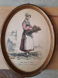 Litografie di Carle Vernet (1758-1836), intelaiate su belle cornici ovali cm.27 x 21. La prima è "Le marchand de barometre", la seconda "Le marchande de roses", facenti parte di una serie illustrativa dei mestieri in auge a Parigi nel primo quarto del 19° secolo. I 2 quadri si presentano in buonissime condizioni, sia di cornici (lieve sbucciatura su una delle due, visibile in foto), sia delle litografie presente all'interno (no giallo, no macchie). Su richiesta posso inviare via sito di Subito foto zoomabili. Si vende la coppia ad Euro 60 + Euro 10 di ottimo imballo e spedizione in tutta Italia con pacco postale Postedelivery tracciabile.