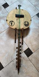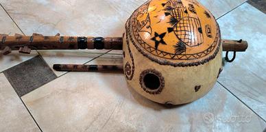 Vendo affascinante liuto etnico africano realizzato a mano, con cassa armonica in zucca essiccata (calabash) e manico in legno inciso.