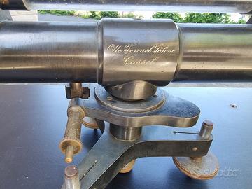Vendo per collezionisti, amatori, tecnici o come oggetto vintage da arredamento un Livello ottico a cannocchiale della Otto Fennel Söhne di Kassel (Germania), simile ad un teodolite, prodotto attorno all'anno 1900, riporta incisi il numero del dispositivo e il nome del produttore. L'oggetto è in ottime condizioni, in ottone ed altri metalli, con due livelle a bolla una longitudinale e l'altra trasversale, con treppiede a piedini regolabili e supporto centrale filettato, completo della sua scatola in legno impiallacciato, completa dei supporti interni su misura per tenere in posizione l'oggetto. Le dimensioni del cannocchiale sono lunghezza cm 37, altezza cm 17 larghezza cm 8, diametro della base cm 17, diametro lente frontale cm 3, diametro oculare cm 2,4. La scatola ha dimensioni esterne lunghezza cm 41, profondità cm 20 altezza cm 22. Il cannocchiale non va valutato per le sue prestazioni ottiche ma per il suo valore tecnico e storico. Preferisco non spedire per evitare danneggiamenti da trasporto, ma eventualmente si può concordare la spedizione, perciò consiglio il ritiro a mano a Trieste, con pagamento in contanti.