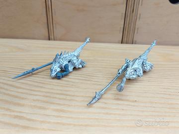 Lizardmen Metal OOP vintage Warhammer Fantasy Seraphon Lustria - Saurus Cold One Riders Content: 2 model = 2 Narraront, 2 riders Manufacturer: GAMES WORKSHOP Product size: 28mm Type: Saurus Riders (original proxy plastic) € 15 GAMES WORKSHOP Risparmi con Spedizione multipla