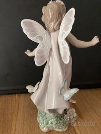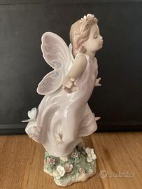 Bellissima figurina Lladró, raffigurante una fatina con ali di farfalla decorata con farfalle e piccoli fiorellini