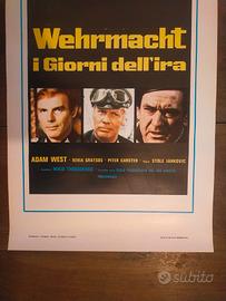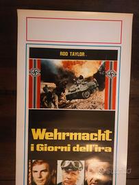 Splendida locandina cinematografica originale della prima edizione italiana del film di guerra "Wehrmacht - I Giorni dell'Ira" (titolo originale: Partizan), uscito nel 1974. Il film, diretto da Stole Janković, è un cult del genere bellico/partigiano e vanta un cast internazionale d'eccezione. Il poster presenta una grafica d'impatto con scene d'azione (carri armati e combattimenti) e i volti dei protagonisti in primo piano.