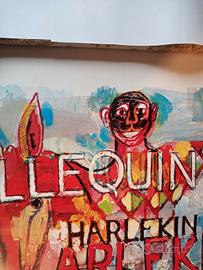 Locandina originale della commedia teatrale " Hellequin, Harlekin, Arlecchino" di e con Dario Fo, con Franca Rame debuttato il 18.10.1985 al XXXII Festival Internazionale Del Teatro alla Biennale di Venezia.