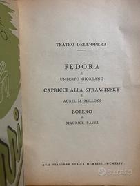 locandina della diciassettesima stagione lirica del Teatro dell'Opera di Roma per gli anni 1943-1944. Annuncia le opere e i balletti in programma per quella stagione. Opere/Balletti principali: Fedora di Umberto Giordano, Capricci e Bolero
