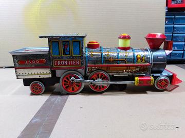 Locomotiva in latta a batterie Frontier 3600 della Modern Toys (Japan), ben conservata e perfettamente funzionante (movimento, luci e suoni), nessuna ossidazione nel vano batterie. Si tratta di un modello raro, è quello più lungo prodotto dalla Modern Toys (45 cm). Richiesta: 70,00 euro poco trattabile. Ritiro a mano su Firenze oppure posso spedire con pacco tracciato delle Poste Italiane (+10,0 euro compreso imballo). In caso di spedizione, data la fragilità dell’oggetto, non rispondo di eventuali danni che si potrebbero causare nel trasporto. Se l’oggetto è sempre presente, vuol dire che è ancora disponibile.