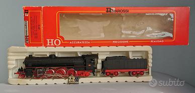 Locomotiva a vapore Rivarossi Gr.746-048 Ferrovie dello Stato in HO, art. 1132 prima serie, nuova, in condizioni estetiche e di conservazione perfette, nella sua confezione originale completa (il blister dove è sistemata la locomotiva col tender, la targhetta nera col marchio Rivarossi dorato fissato ai biellismi con sottile cordicella dorata, la scatola di cartone esterna e le Istruzioni per l’uso e la manutenzione del modello, sono tutti originali Rivarossi).