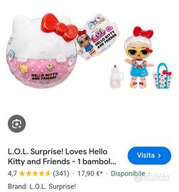 Vendo a € 15,00 ciascuna, ancora da scartare, aperte solo per vedere il personaggio: LOL Hello Kitty e LOL Pochacco . Solo consegna a mano. Fermate metro A,B, C.