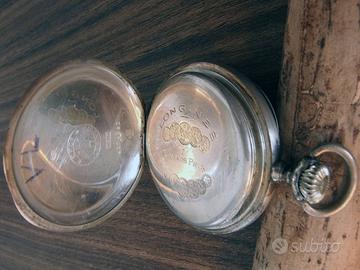 Orologio da taschino in argento 800, Longines Efco 7 Grands Prix, numero di Serie 4074052 (Serie che il database di Longines dichiara risalente al 1922). FUNZIONANTE e interamente originale. Molto raro in queste condizioni.