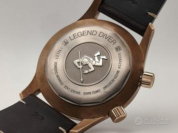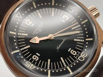 Longines Modello (Orologio) Legend Diver Numero di referenza L37741502 Carica Automatico Materiale della cassa Bronzo Materiale cinturino Pelle Anno di produzione 2022 Condizione Usato (Buono) Corredo Con scatola originale e documenti originali Genere Orologio da uomo/Unisex Luogo italia.viareggio Disponibilità L’articolo è in magazzino Calibro Carica Automatico Cassa Materiale della cassa Bronzo Diametro 42 mm Quadrante Verde Cinturino Materiale cinturino Pelle Colore cinturino Marrone Altro Cifre luminescenti, Lunetta girevole, Corona a vite, Indici luminescenti Longines Legend Diver Green Dial Men's Watch 42mm Longines Legend Diver Full Set