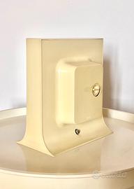Condizioni: buone, la plastica con gli anni è un po' ingiallita in modo uniforme, il display è perfetto, l'angolino sinistro della base è stato riparato (ultima foto); l'orologio funziona, bisogna solo avere l'accortezza di bloccare la pila nel suo alloggiamento perché la plastica è un po' deteriorata (vedi foto).