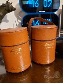 Vendo in blocco i tre orologi d'epoca della Lorenz modello STATIC ,design Richard SAPPER tre tipi di meccaniche differenti ( due elettromeccaniche diverse ed uno quarzo) due completi della loro custodia in cuoio " compasso d oro" , quello dorato movimento al quarzo manca il vetro , TUTTI FUNZIONANTI PREZZO 1000 EURO NON TRATTABILE.