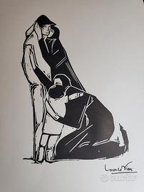 Lorenzo Viani (Viareggio, 1882 – Ostia, 1936) è stato uno dei più importanti esponenti dell'espressionismo italiano. Artista poliedrico, fu pittore, incisore, scrittore e giornalista, noto per il suo profondo impegno sociale e la sua vicinanza agli ideali anarchici. Dettagli delle opere in vendita Titolo: Il marito lontano (noto anche come L'attesa o Madre col bambino. Periodo: Realizzata tra il 1910 e il 1915. Tecnica: Xilografia su carta pesante. Dimensioni: L'inciso misura solitamente circa 29x15 cm Titolo: Il ritorno indicato talvolta anche come L'abbraccio Contesto: È la quinta tavola della celebre cartella xilografica intitolata "Il martirio", pubblicata a Viareggio nel 1915. Tecnica: Xilografia su carta pesante. Dimensioni: L'inciso misura solitamente circa 29x15 cm Titolo: Ritratto di Shelley (o semplicemente Shelley). Periodo: Realizzata intorno al 1910-1915. Tecnica: Xilografia su carta pesante. Dimensioni dell'inciso 29x18 cm. Tutte le xilografie sono riportate su carta pesante 35x50. Firma in basso autografa e in stampatello su ritratto poeta.