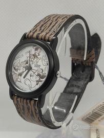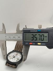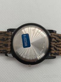 Cinturini in pelle o in plastica e cassa in plastica di 3,5-4cm di diametro (come un normale swatch).
