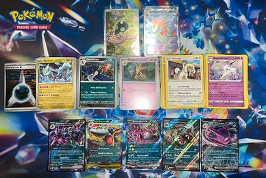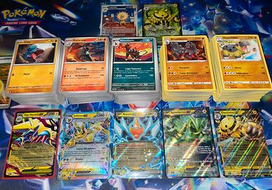 Lotto carte Pokémon composto da 1 chilo di carte miste di spada e scudo,scarlatto e violetto e mega evoluzioni comuni e rare (non holo e reverse) circa 600 carte,energia holo,5 ex regular,1 carta full art,1 carta ill. rara