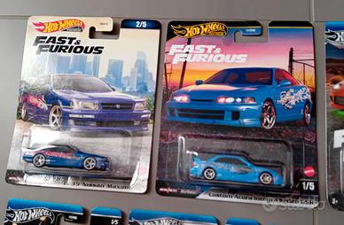 Lotto di 11 veicoli Hotwheels Fast and Furious ancora sigillati e in ottime condizioni Vendibili anche singolarmente al prezzo di 22 euro cadauna le PREMIUM e 11 euro cadauna le altre. Per acquisti multipli sconti come segue: - 5 % a partire da 3 veicoli - 10% a partire da 5 veicoli