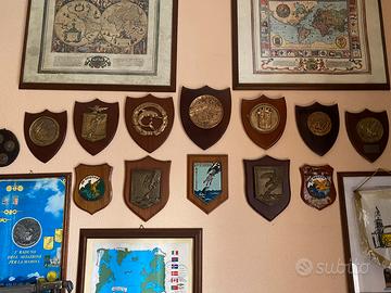 Lotto 12 Crest Militari Storici - Aeronautica Militare & Antisom (Sigonella/41° Stormo) Pprestigiosa collezione composta da 12 Crest militari originali, montati su basi in legno pregiato. La raccolta è focalizzata sulla storia dell'Aviazione per la Marina e sulla lotta Antisommergibile (Antisom), con pezzi di grande valore iconografico e storico legati alla base di Sigonella. I Punti Forti della Collezione: • Specializzazione Tematica: Una raccolta coerente che celebra i reparti d'élite del 41° Stormo, dell'87° Gruppo e dell'88° Gruppo Atlantic. • Pezzi Commemorativi Rari: Include l'esclusivo Crest "1° Lustro 88° Gruppo (1972-1977)", un pezzo a tiratura limitata ideale per completare serie storiche. • Varietà di Fattura: La collezione vanta sia raffinati Crest in bronzo fuso che versioni con smalti policromi ancora brillanti e ben conservati. • Iconografia d'Eccellenza: Presenti i simboli classici del settore, dal delfino dei sommergibilisti all'aquila che ghermisce il sottomarino, icone intramontabili della specialità Antisom. • Stato di Conservazione: Gli oggetti sono stati conservati con cura; il legno mantiene la sua integrità e i metalli presentano la patina originale che ne attesta l'autenticità. Elenco dei Pezzi Inclusi: 1.Crest 41° Stormo Antisom (Smalto) 2.Crest 87° Gruppo Antisom 3.Crest 88° Gruppo Atlantic (Smalto) 4.Crest Commemorativo 1° Lustro 88° Gruppo (1972-1977) 5.Crest MARICENTRO Sigonella 6.Crest Sommergibili (Delfino e corona di alloro) 7.... [e altri 6 tra gruppi di volo e comandi] Ideale per collezionisti di militaria aeronautica, ex appartenenti ai reparti, o come prestigioso complemento d'arredo per studi professionali e uffici. Condizioni: Ottime, come da foto. Prezzo (per il blocco) 450€. NO OFFERTE PER PEZZI SINGOLI. SOLO VENDITA INTERA COLLEZIONE.