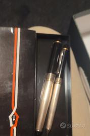 DELTA (2 Penne): Set di altissimo pregio del marchio "Artigiani della Scrittura". Include una stilografica in resina madreperla con finiture dorate e una roller coordinata (nera/argento). Complete di scatola, certificati e inchiostro originale. AURORA HASTIL: Icona del design italiano (esposta al MoMA di New York), in acciaio satinato e finiture nere. LALEX 1938: Set esclusivo in argento laminato oro, manifattura storica napoletana, completo di astuccio in velluto. AURORA VINTAGE: Penna laminata oro, un classico dell'eleganza italiana. WATERMAN PARIS: Stilografica laccata grigia con dettagli rossi, eccellente manifattura francese. SET PRESTIGE: Penna in Argento 925 e Oro 24K con certificato di autenticità. ALTRE PENNE: Il lotto comprende circa 10-12 pezzi totali tra cui modelli Parker, Reform, Giadem e altre penne a sfera vintage. Condizioni: Tutte le penne sono nuove e conservate con cura. Molte sembrano non essere mai state inchiostrate. Gli astucci sono originali e in ottime condizioni.1400