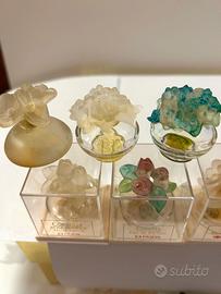 I pezzi sono tutti diversi tra loro, ognuno ha un tappo con fiore diverso e nel lotto e’ compreso anche un Kenzo e un Femina di Alberta Ferretti poiche’ sempre mignon con ricorrente bottiglietta fiore