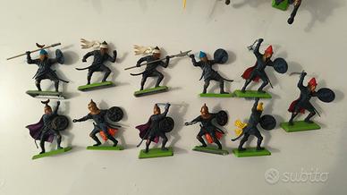 Lotto di 16 soldatini saraceni Britains Deetail, 5 cavalieri e 11 a piedi. Made in England 1971. Qualche segno di usura del tempo e qualche arma mancante(vedi foto) ma ancora molto belli.
