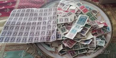 lotto di circa 1670 marche da bollo di lire italiane, vario taglio, da 1 lira a 2, 10, 30, 50, 100, 500 e 1000 lire