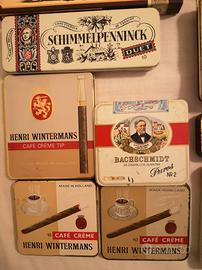 Lotto di 17 scatole vuote di sigari e cigarillos diverse più 3 doppie. Una scatola tabacco Prince Albert è molto vecchia.