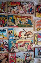 Vendo lotto di 19 striscie di varie collane anni '50-'60, include due Tex (n°5 serie Rodeo, n° 104 usurato), 5 numeri di Akim e altri di Ed. Beta, Ed. Periodici, Collana Spada, Albi Stella d'Oro, Collana Folgore. In condizioni mediamente buone, alcuni presentan segni di usura o umidità, qualche scritta a penna.