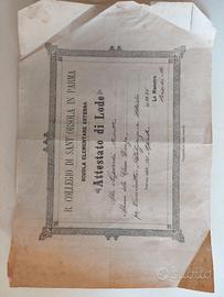 lotto 2 attestati di lode del Regio Collegio 1877-78 e 1880