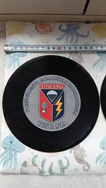 VENDITA UNICO LOTTO: ***Crest artigianale del 1° Reggimento Carabinieri Paracadutisti Tuscania. ***Crest artigianale Nave Amerigo Vespucci della Marina Militare Italiana. Entrambi con stemma centrale in plastica lucida a colori (con diametro cm. 10) collocato al centro di disco in vinile 45 giri vintage (con diametro di cm. 17,5). NUOVI, ottimi, perfetti. Introvabile da collezione. Disponibile per altre informazioni.