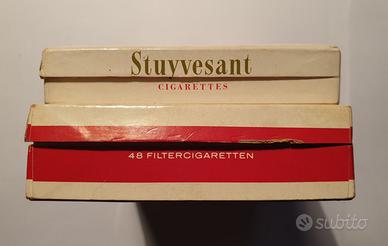 Lotto di 2 rare scatole in cartone VUOTE di sigarette Vintage da collezione. Sono pacchetti molto belli STUYVESANT da 30 sigarette e LORD da 48 sigarette, formato a scatola con coperchio anni 70/80. In ottime condizioni come da foto.