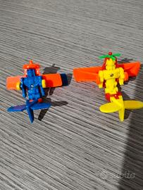 Robot Blu/Arancione: Ispirato al design di Heavy Tread. Si trasforma in un aereo acrobatico con elica frontale e carrello con ruote gialle funzionanti.