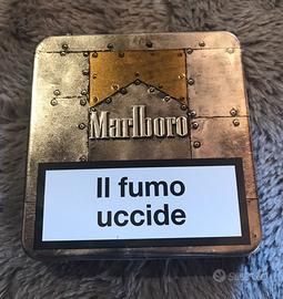 Lotto due scatole in latta da collezione della Marlboro porta sigarette vintage!! Porta sigarette vintage Marlboro degli anni 80!!