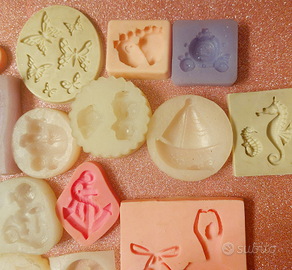 Vendo come da foto questi 20 stampi in gomma siliconica per realizzare formine in gesso o polvere di ceramica da decorare ed utilizzare come bomboniere.