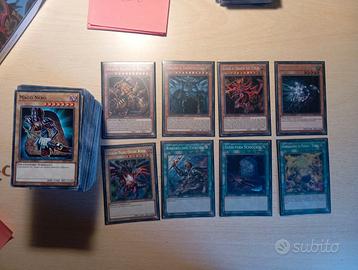 tenute in maniera impeccabile e provenienti dal cofanetto la città dei duelli e varie altre buste d'espansione. contiene diverse carte rare e ultra rare e 8 carte secret tra cui le divinità egizie, drago nero ecc.